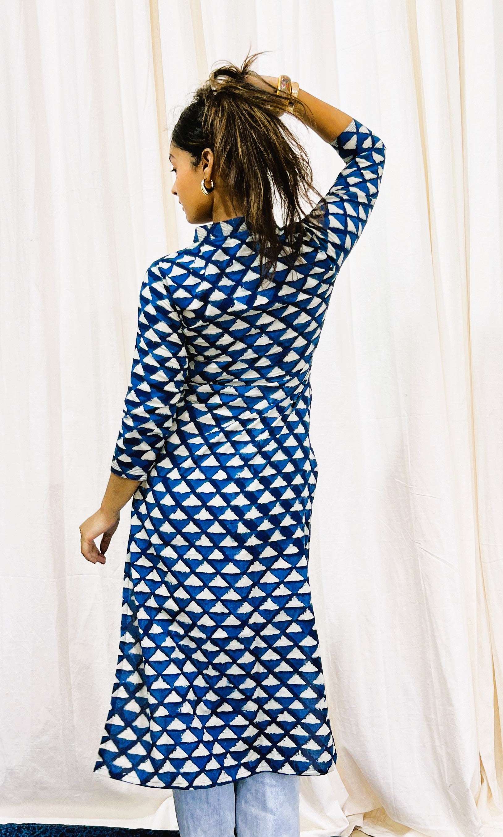 Elegant and effortlessly timeless, this Indigo Block Printed V-Neck Kurti is a celebration of traditional craft and everyday comfort. Crafted from soft, breathable cotton and adorned with handblock prints, it’s ideal for workwear, casual outings, or festive minimalism.