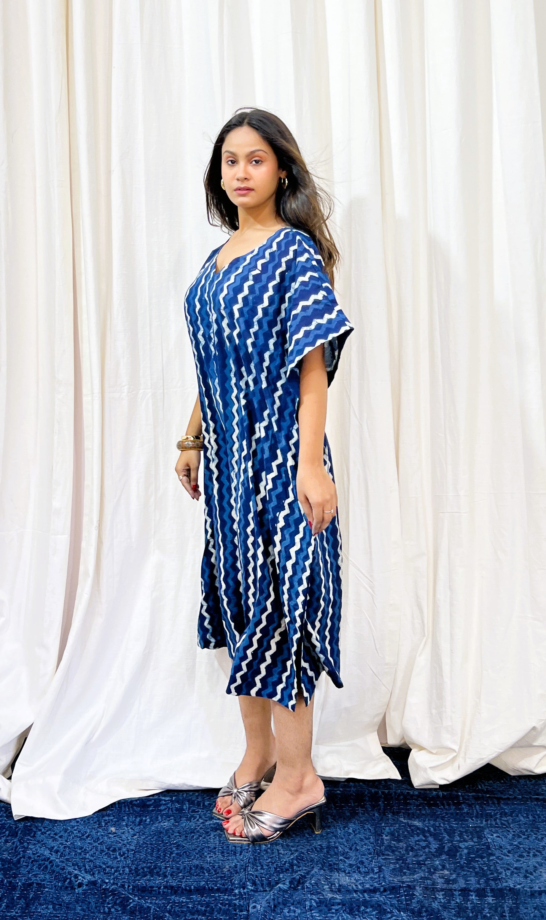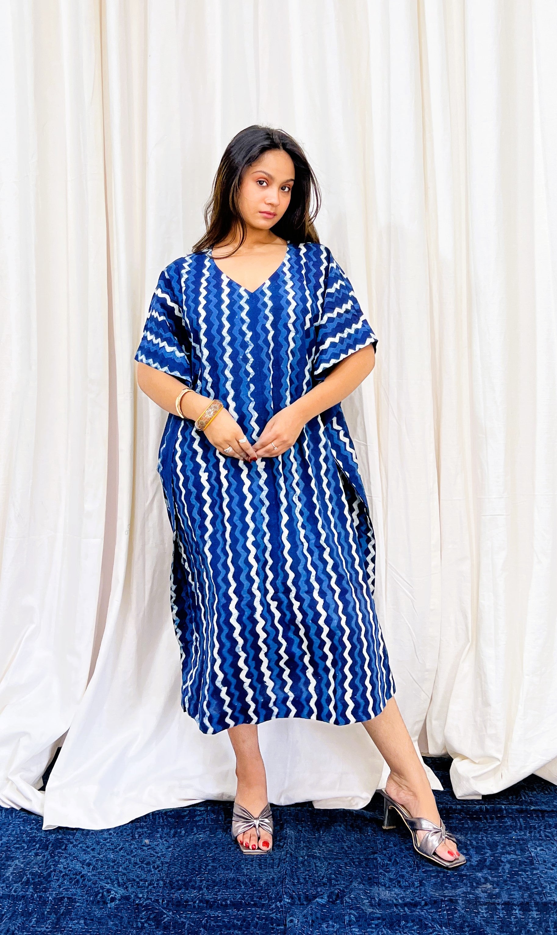 Wrap yourself in effortless elegance with our flowing, block-printed long kaftan — a heritage-inspired wardrobe essential.