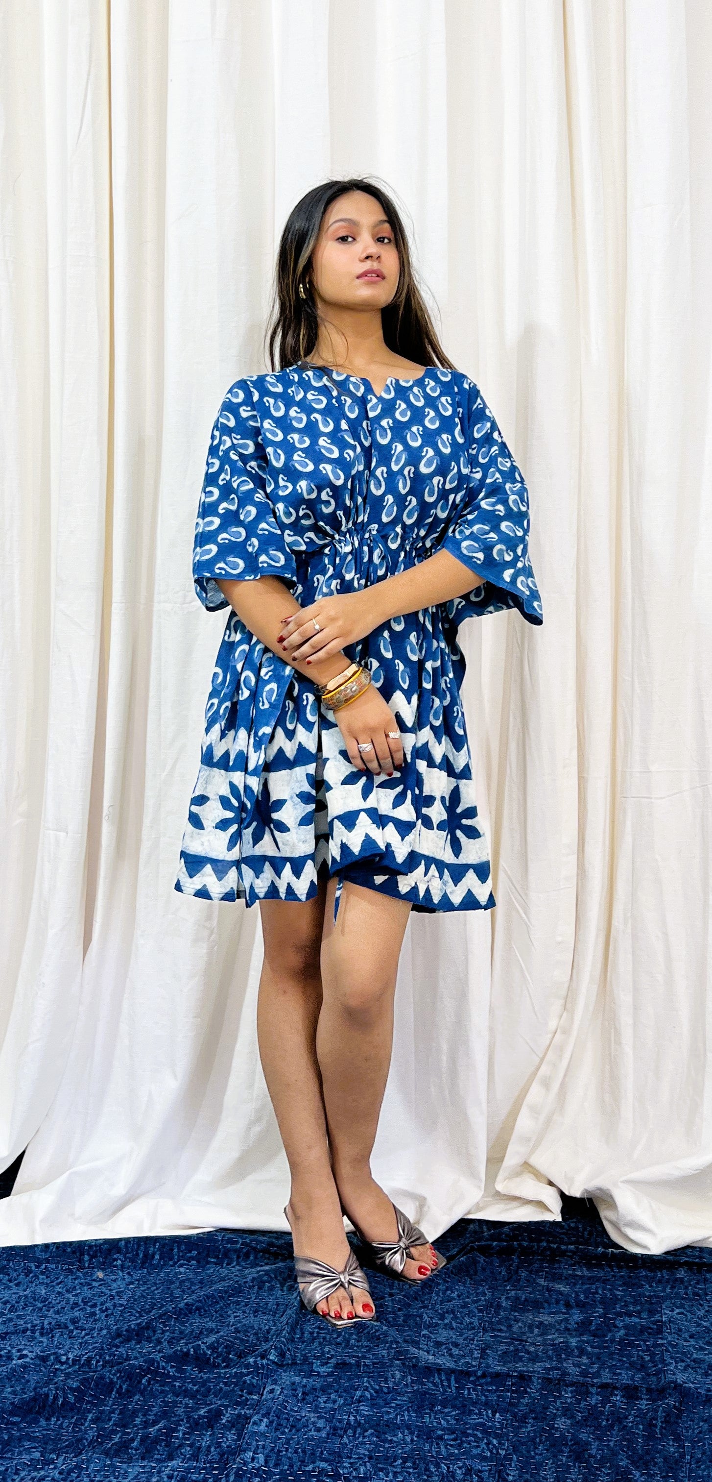 Embrace carefree comfort with our breezy, hand-block printed short kaftan — your go-to for boho charm.