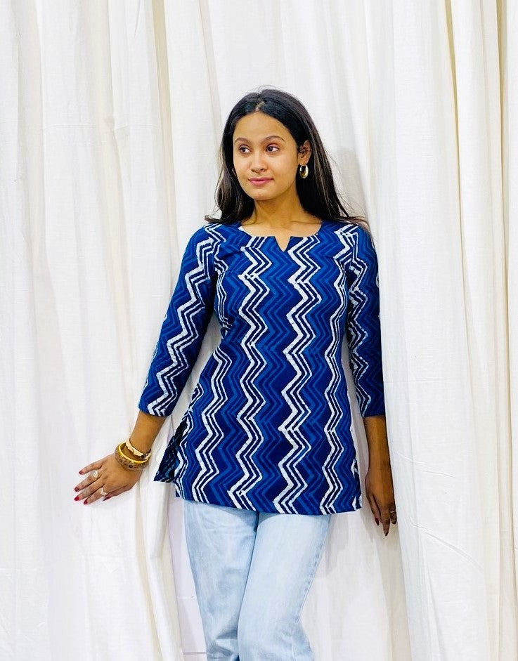 Elevate your everyday ethnic look with our breathable and beautifully hand-block printed short kurtis.