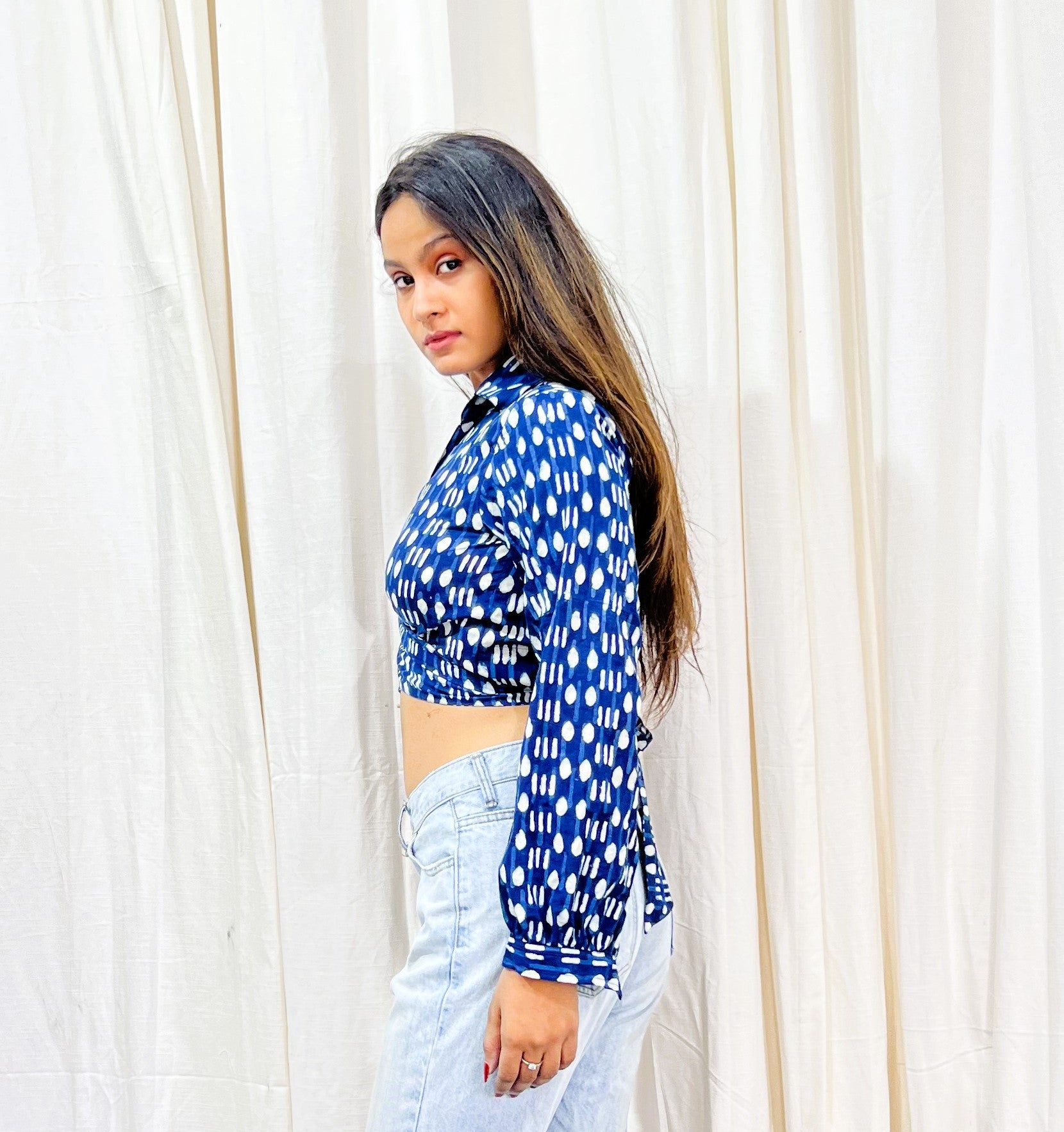 This hand-block printed wrap-around top is a versatile, stylish, and flattering piece that brings together traditional Indian prints with a modern, structured silhouette. The wrap-around design ensures a comfortable and adjustable fit, making it suitable for various body types. Perfect for casual wear, office chic, festive fusion, or vacation styling, this top adds effortless charm to any outfit.